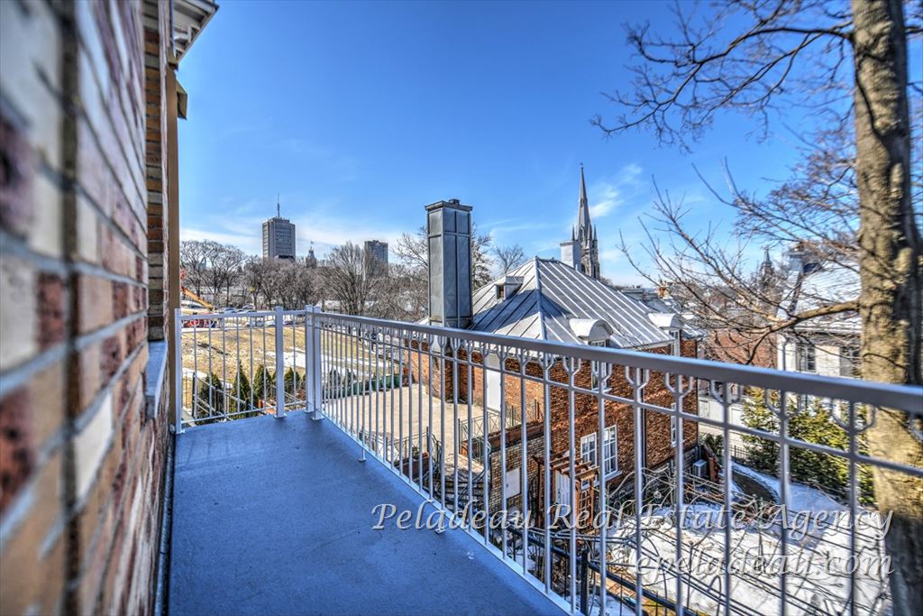 OLD QUÉBEC: Just steps from the Fairmont Château Frontenac and facing the Citadel, this stunning 1,828 sq. ft. condo is located in the former Québec City Conservatory of Music. It features 3 bedrooms, 2 bathrooms, a wood-burning fireplace in the living room, remarkable ceiling height, and a private rear balcony. Nestled on one of the most beautiful streets in the neighborhood, with no direct front neighbors, this gem combines historic charm with modern comfort. A rare opportunity with 2 parking spaces included. Come live a piece of history in the heart of Old Québec.