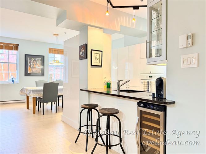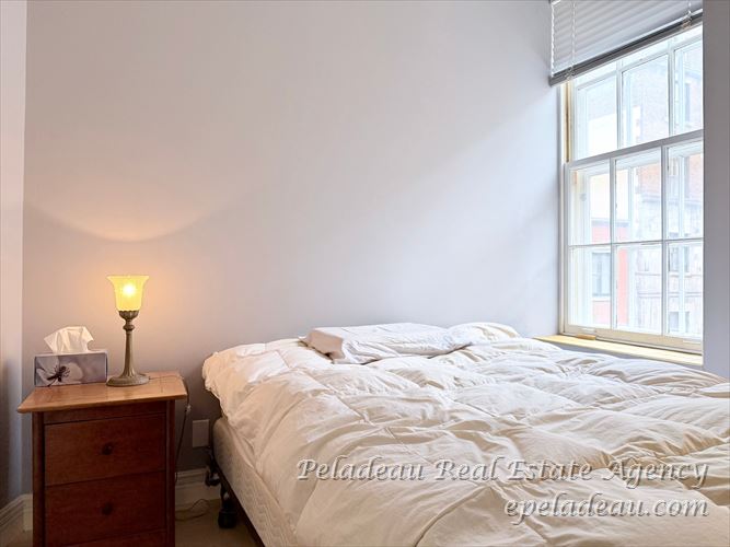 OLD PORT: Stunning condo located on a charming pedestrian street in the heart of a sought-after historic district. This refined unit on the 3rd and second-to-last floor features impressive windows that allow beautiful natural light to flow through, highlighting the interior architecture. It offers 3 bedrooms, 1 full bathroom, a private balcony, as well as access to a shared rooftop terrace. The building is equipped with an elevator (freight lift) that opens directly into the condo--an uncommon advantage in this heritage area where historic architecture prevails. Private parking included, a valuable asset in the Old Port.