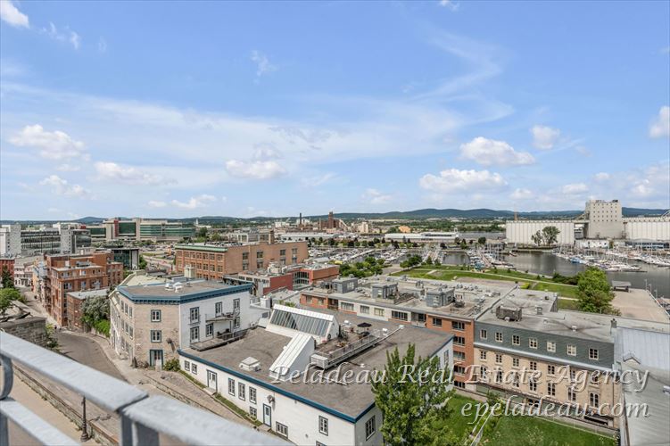 OLD QUÉBEC: Love at first sight! Stunning undivided co-ownership perched on the top floor of a historic property. It features a spacious bedroom, soaring cathedral ceilings, beautiful exposed beams, stone walls and warm hardwood floors. Enjoy an expansive private terrace with breathtaking views of the marina and the St. Lawrence River. A rare opportunity in the heart of Old Québec, don't miss your chance!