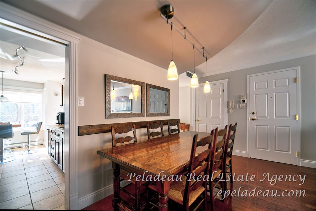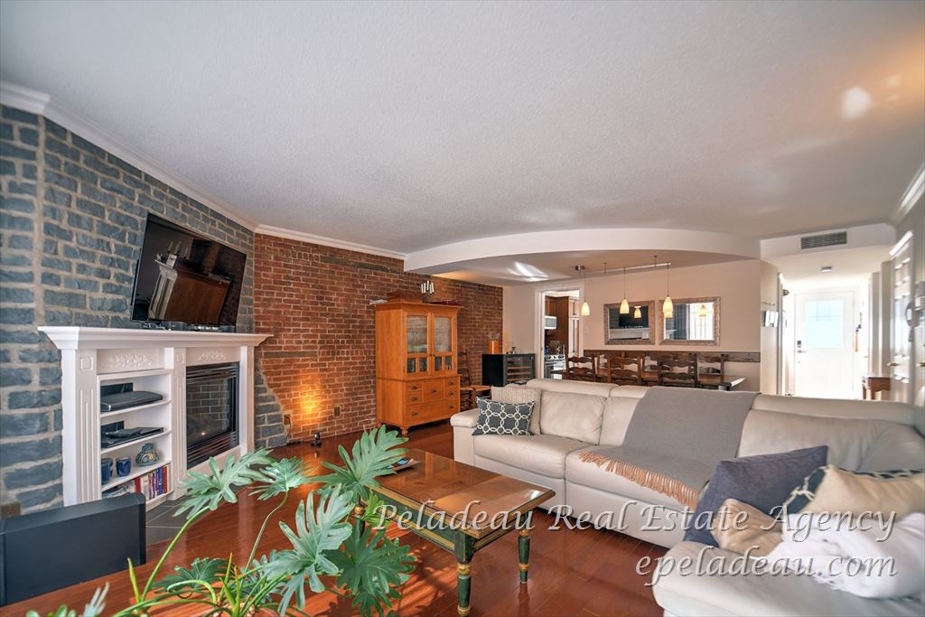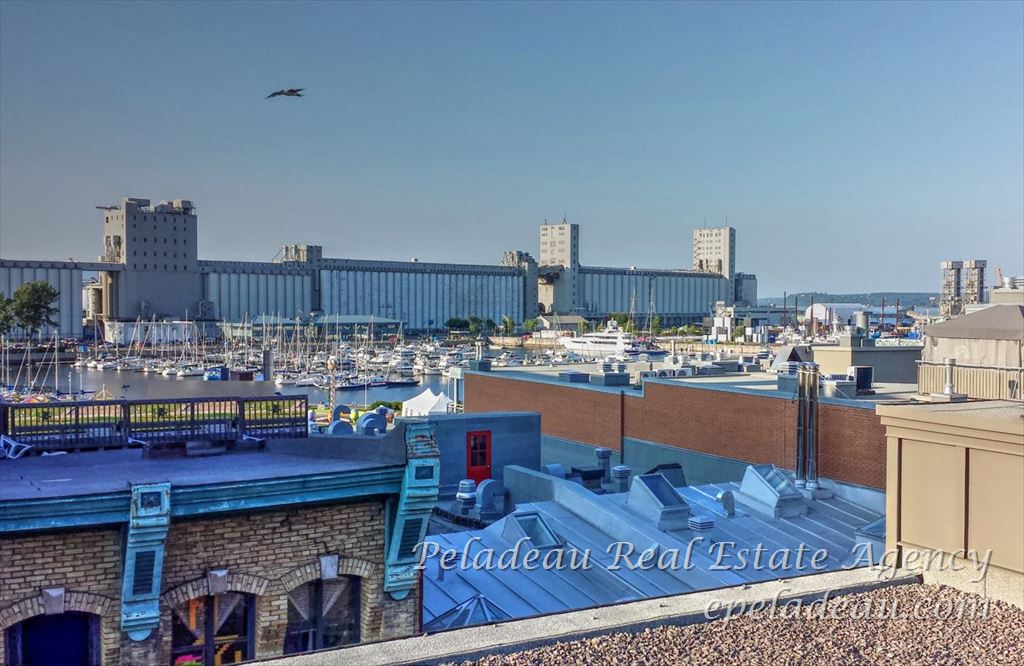 OLD PORT: "Le Jardin des Remparts". Magnificent 1,285 sq. ft. townhouse-style condo, located on the top two floors of a modern building with cross-ventilated windows. Enjoy a refined living space featuring a gas fireplace in the living room and a central heat pump. This property offers 2 bedrooms, 1 bathroom, 1 powder room and a private rooftop terrace with an outdoor kitchen. An INDOOR PARKING SPACE and storage are also included. Take in the breathtaking panoramic view of the Old Quebec City ramparts. A unique opportunity not to be missed!