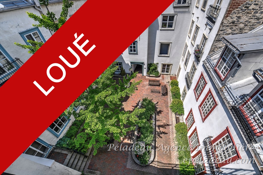 VIEUX-QUÉBEC : Superbe condo, très lumineux,fenestration de coin, rénové avec cachet, grande chambre à coucher, cuisine équipée, comptoir de granit, vue sur la fontaine et le parc, espace laveuse/sécheuse, magnifique cour intérieure. Situé face à la gare du palais, près du palais de justice et de tous les services. Stationnement à vignette ou en location à la Gare du Palais en face de l'immeuble, selon tarif en vigueur. (Non fumeur, aucun animaux, preuve d'assurance en responsabilité civile demandé)