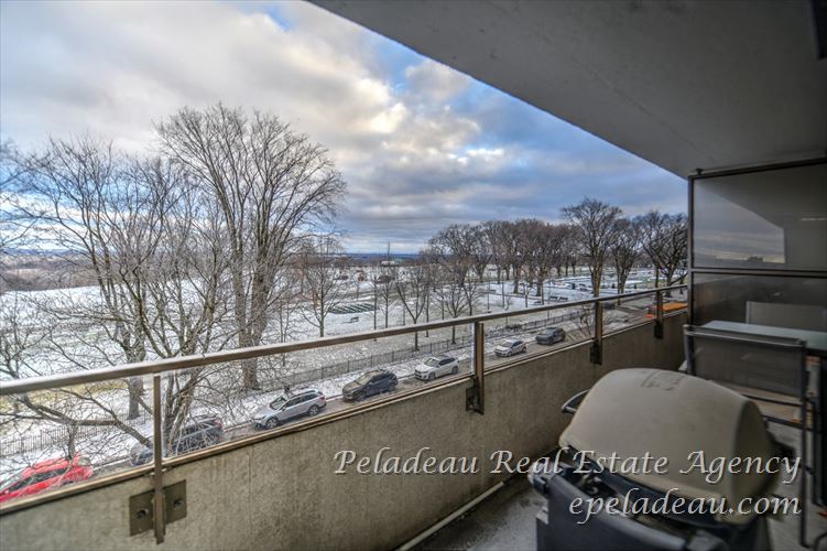 MONTCALM: Superb condo offering breathtaking views of the Plains of Abraham from the main living area and its private balcony. You will enjoy a timeless kitchen, a primary suite with an adjoining bathroom, a second well-sized bedroom, and an additional full bathroom. Large windows flood the space with beautiful natural light. The condo also includes a storage locker in the basement, an indoor parking space, and access to a **common rooftop terrace featuring spectacular views of the Plains and the river.