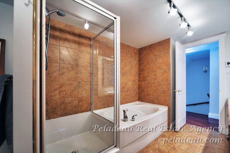 OLD PORT: "Le Jardin des Remparts". Magnificent 1,285 sq. ft. townhouse-style condo, located on the top two floors of a modern building with cross-ventilated windows. Enjoy a refined living space featuring a gas fireplace in the living room and a central heat pump. This property offers 2 bedrooms, 1 bathroom, 1 powder room and a private rooftop terrace with an outdoor kitchen. An INDOOR PARKING SPACE and storage are also included. Take in the breathtaking panoramic view of the Old Quebec City ramparts. A unique opportunity not to be missed!