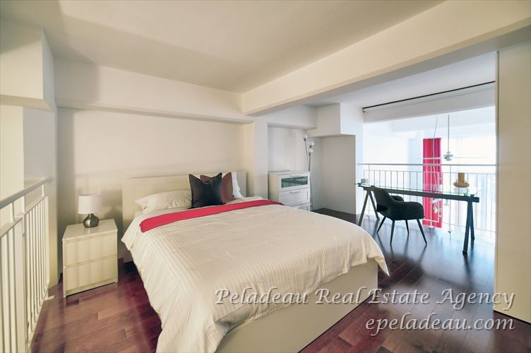 OLD PORT: "Les Lofts de la Marina". Superb unit for rent in the heart of the Old Port, offering the perfect blend of design and comfort. This bright condo features a mezzanine bedroom, 15-ft ceilings, air conditioning, indoor parking, and a shared rooftop terrace. Ideally located just steps from restaurants, boutiques, and the marina, it is a unique pied-à-terre in one of the city's most sought-after neighborhoods.