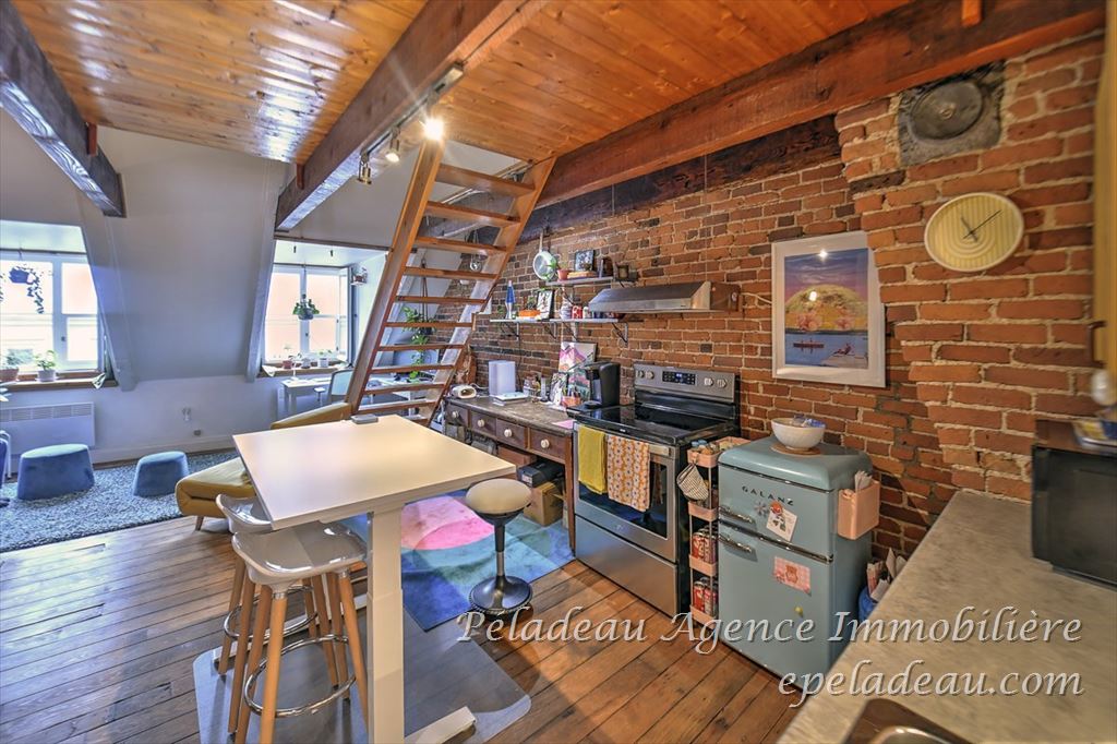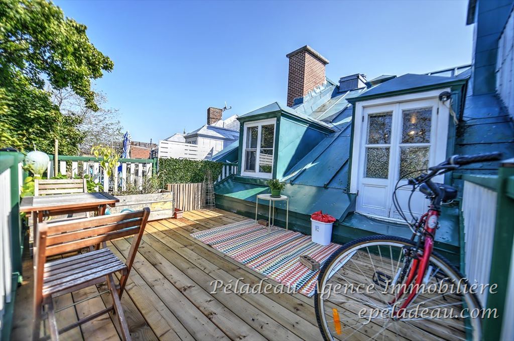 VIEUX-QUÉBEC: À l'intérieur des portes, TRIPLEX dont 2 appartements sur 2 niveaux, 1 x 4 1/2 et 2 x 3 1/2, planchers bois, murs brique et pierre, poutres apparentes, foyers, grandes terrasses arrières, cour arrière avec patio, revenus de 36 180 $/an.