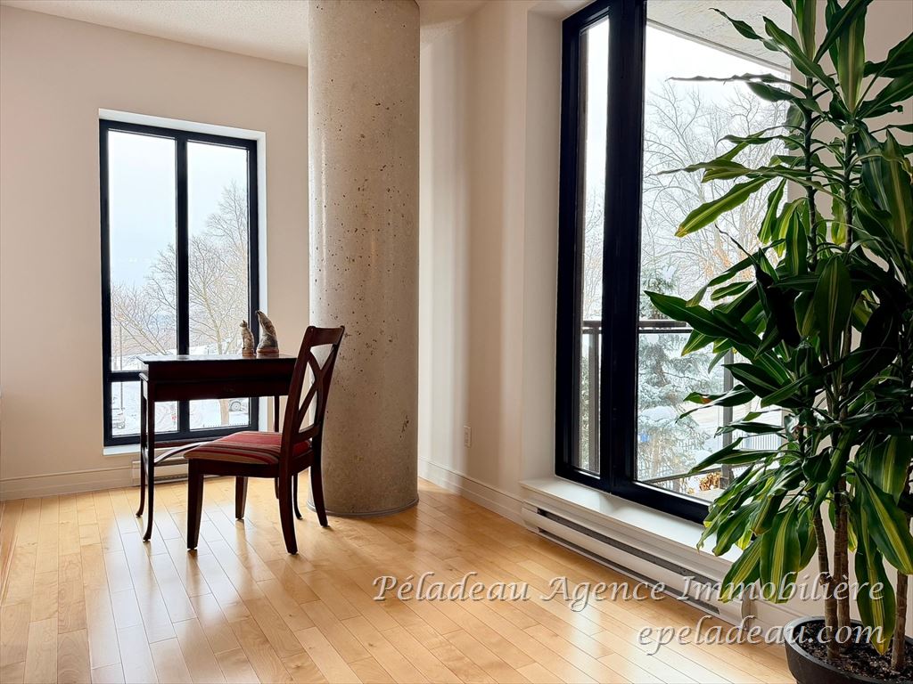 MONTCALM : Le George V, superbe condo divisé baigné de lumière grâce à son orientation privilégiée à l'avant de l'immeuble, directement face aux Plaines d'Abraham. Situé au 2e étage, il offre 1 chambre, 1 bureau, un espace de vie à aires ouvertes et un grand balcon prolongeant agréablement l'espace de vie. Vous bénéficierez d'un stationnement intérieur ainsi que de l'accès à un ascenseur et à une salle d'entraînement. Vivez le prestige de l'avenue Wilfrid-Laurier dans l'un des immeubles les plus recherchés du secteur!