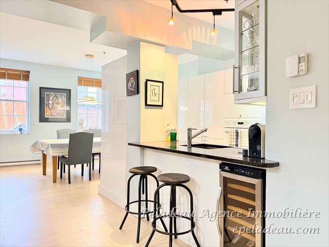 VIEUX-PORT : Superbe condo divise situé sur une charmante rue piétonnière, au coeur d'un secteur historique prisé. Cette unité épurée au 3e et avant-dernier étage bénéficie d'une fenestration intéressante qui laisse entrer une belle lumière naturelle et met en valeur son architecture intérieure. Elle offre 3 chambres, 1 salle de bain, un balcon privé ainsi qu'un accès à une terrasse commune sur le toit. L'immeuble est doté d'un ascenseur (monte-charge) menant directement au condo, un avantage rare dans ce secteur patrimonial où l'architecture d'époque domine. Stationnement privé inclus, un atout précieux dans le Vieux-Port.
