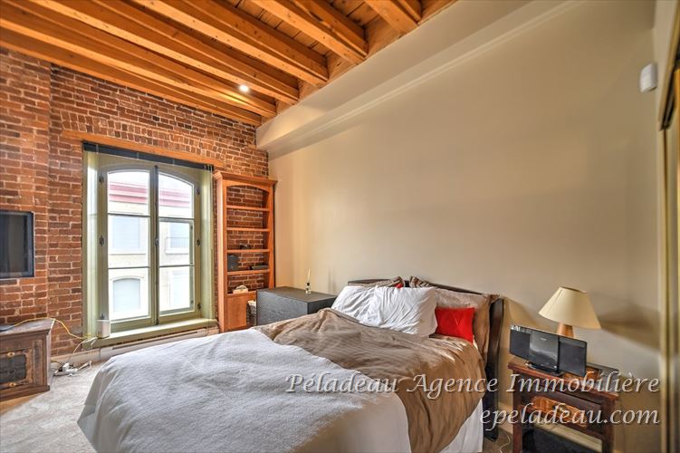 VIEUX-PORT : "La Maison Thibodeau" -- Condo rénové de style loft, situé à proximité du fleuve. Loué entièrement meublé, avec hauts plafonds, murs de brique, ascenseur et terrasse commune sur le toit. (Non-fumeur. Animaux non acceptés) Location obligatoire de 12 mois et plus. Disponible à partir du 1er juillet 2025.