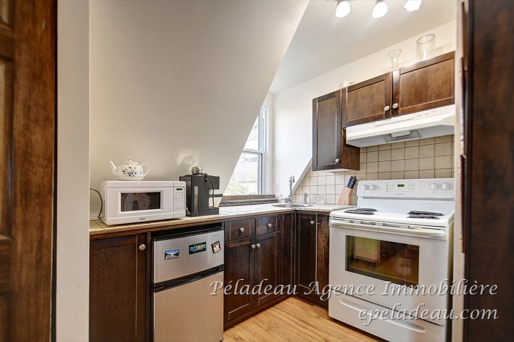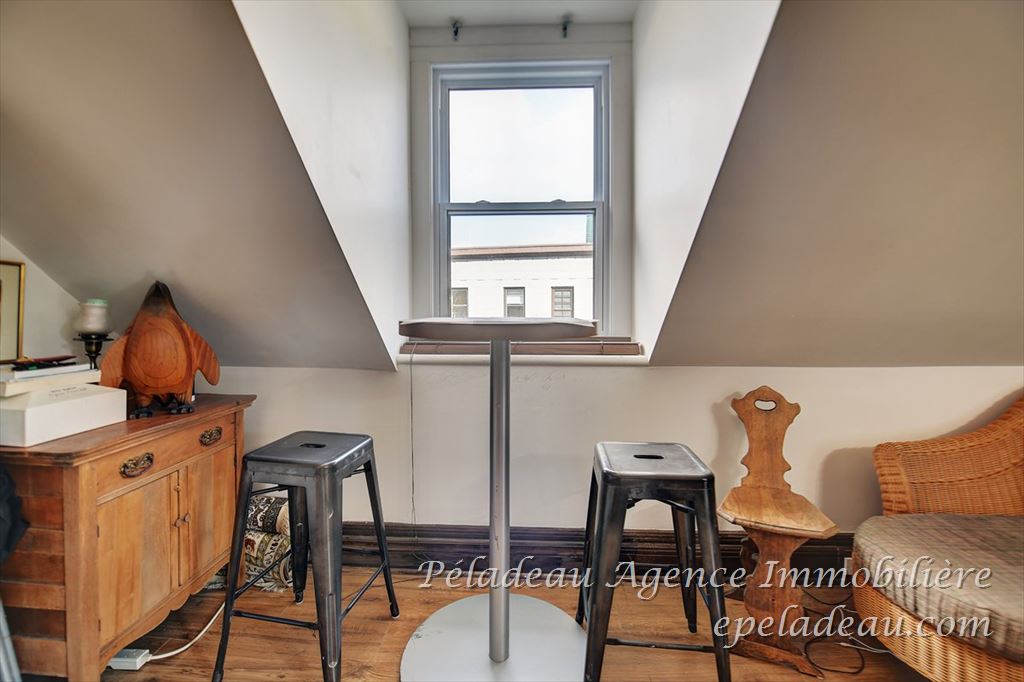 MONTCALM: Situé sur la prestigieuse Grande-Allée, ce charmant loft au dernier étage offre le parfait équilibre entre confort et vie urbaine. À quelques pas des commerces, des restaurants et des Plaines d'Abraham, il permet de profiter pleinement du dynamisme du quartier. Le lit escamotable maximise l'espace et transforme aisément la pièce en un véritable salon de jour. Terrasse commune sur le toit et buanderie dans l'immeuble. Idéal comme pied-à-terre à prix modique. Disponible rapidement.